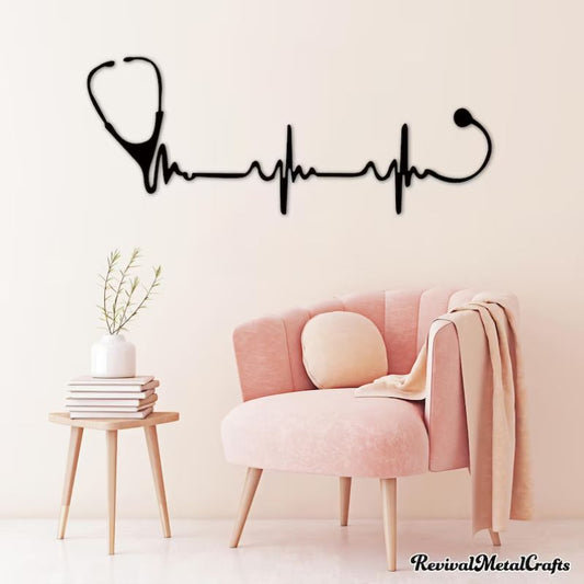 Stethoscope Heartbeat Wall Art – Premium Black Acrylic Décor for Clinics & Homes