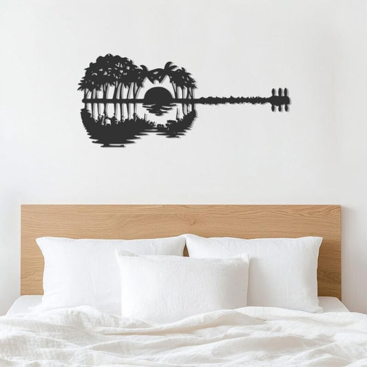 Guitar Landscape Wall Art – Sunset Palm Tree Design | Premium Acrylic Decor