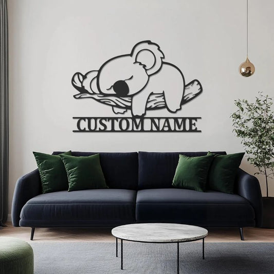 Custom Name Sleeping Koala – Premium Black Acrylic Wall Decor