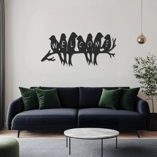 Birds Welcome Wall Art – Premium Black Acrylic Design