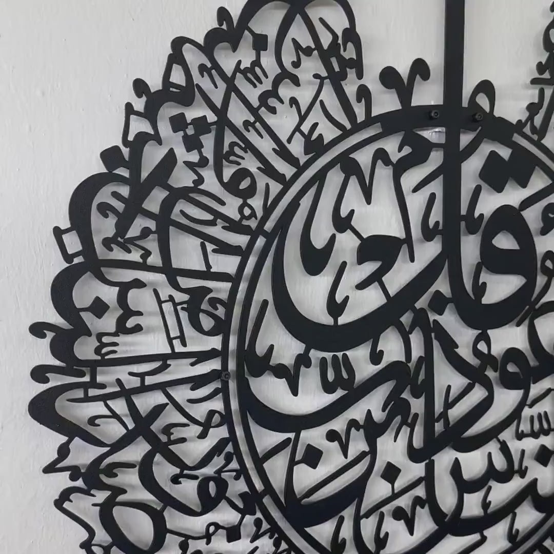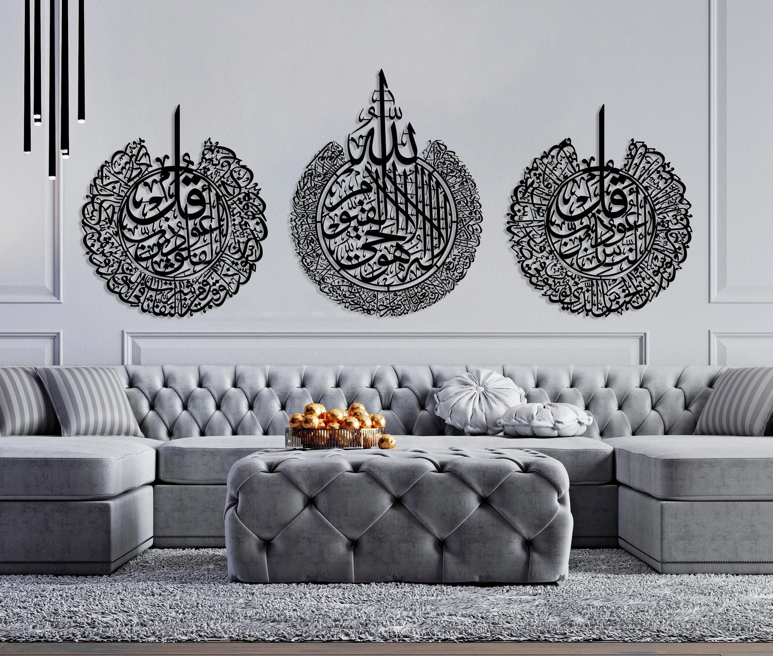 Elevate your home with the timeless beauty of Islamic art. This Wooden Islamic Wall Art features intricately carved verses of Ayatul Kursi, Surah Al-Falaq, and Surah An-Nas, bringing spiritual elegance and tranquility to your space. Crafted from high-quality wood, this piece blends traditional craftsmanship with modern design, making it a perfect addition to any living room, prayer area, or office.